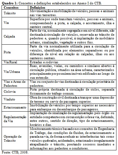 - Quadro 1: Conceitos e definições estabelecidos no Anexo I do CTB.