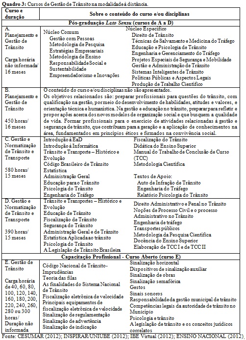 - Quadro 3: Cursos de Gestão de Trânsito na modalidade à distância.