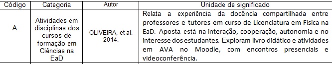 Oliveira, A. S.; et al. (2014). Relato sobre Docência Compartilhada em Educação a Distância. Revista Química Nova na Escola, 36(1), 37-43.