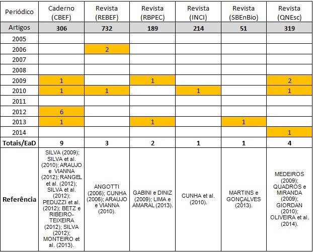 Silva, H. C., et al. (2012). Produção de conhecimentos sobre ensino de física na modalidade a distância: tendências, lacunas, novas questões. Caderno Brasileiro de Ensino de Física, 29 (n. especial), 708-728.